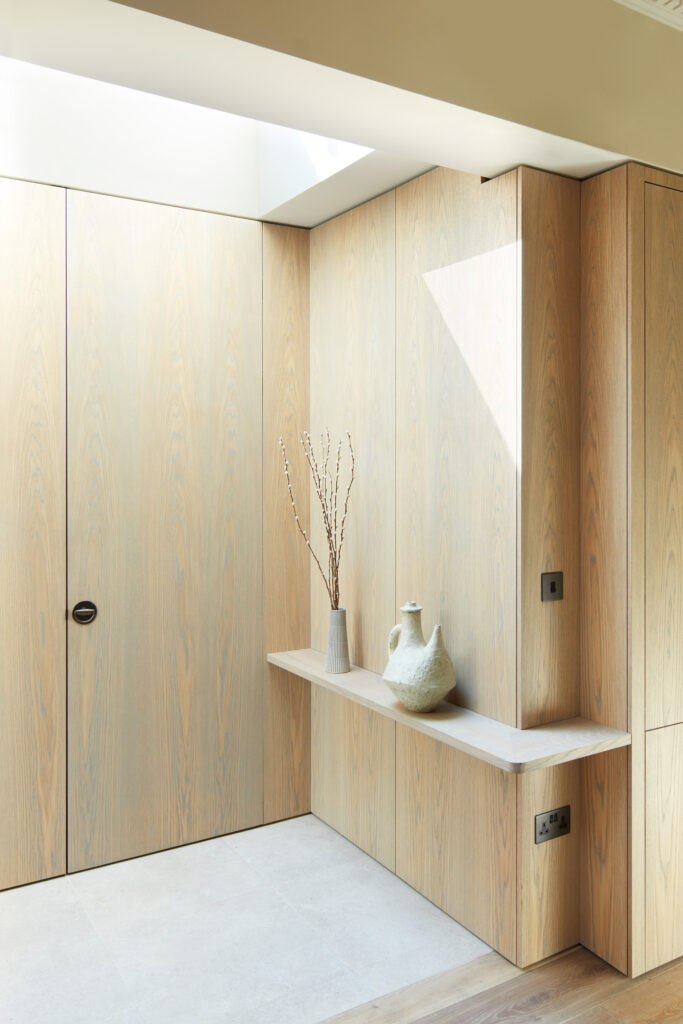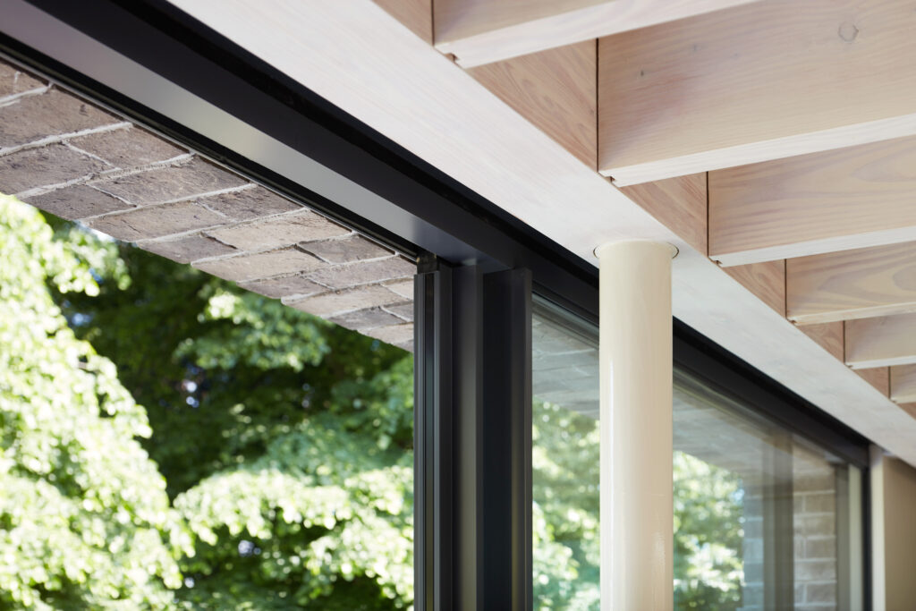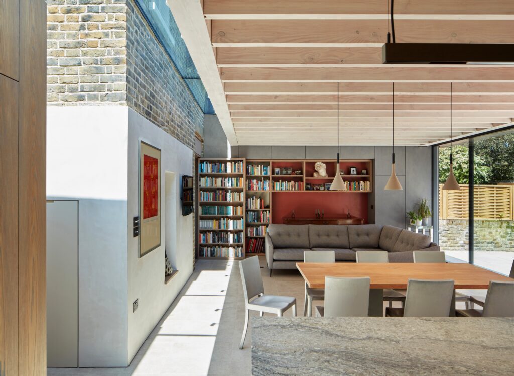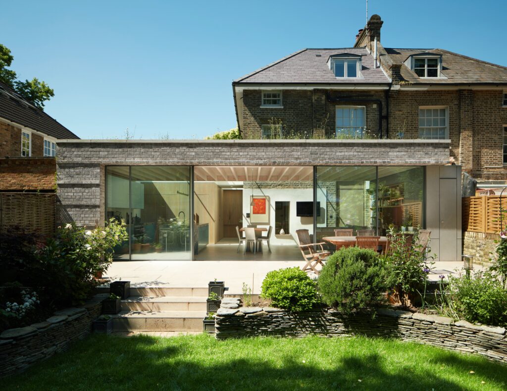 By stripping away the rear and side extensions, we ‘discovered’ the old house, in plan and materiality. Strip skylighting separates and illuminates the historic building, while the new timber extension offers a generous and contemporary living space, fully open to the garden.