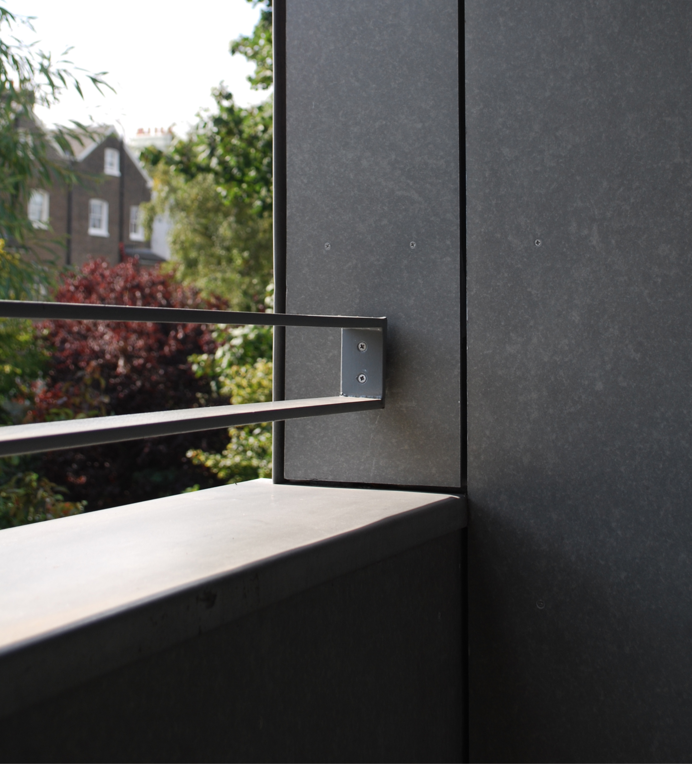 We unified the basement and ground floors with an open stair against a 2-storey front wall and a glass floor at the rear. A full-width glazed rear extension brought the courtyard garden into the house, while enlarged bedroom windows and an inset balcony dormer at the rear and glass dormers at the front opened the house to the sky.