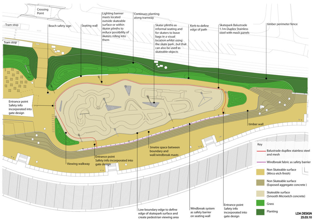In each project the skatepark was designed not only to satisfy the specific requirements of its recreational brief, but was considered as part of a wider opportunity for development. Emphasis was put on the skatepark as an urban regenerator, bringing together the local youth in an informal, optimistic setting whilst creating links to the general public and upgrading the surrounding environment.