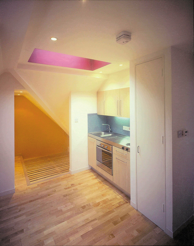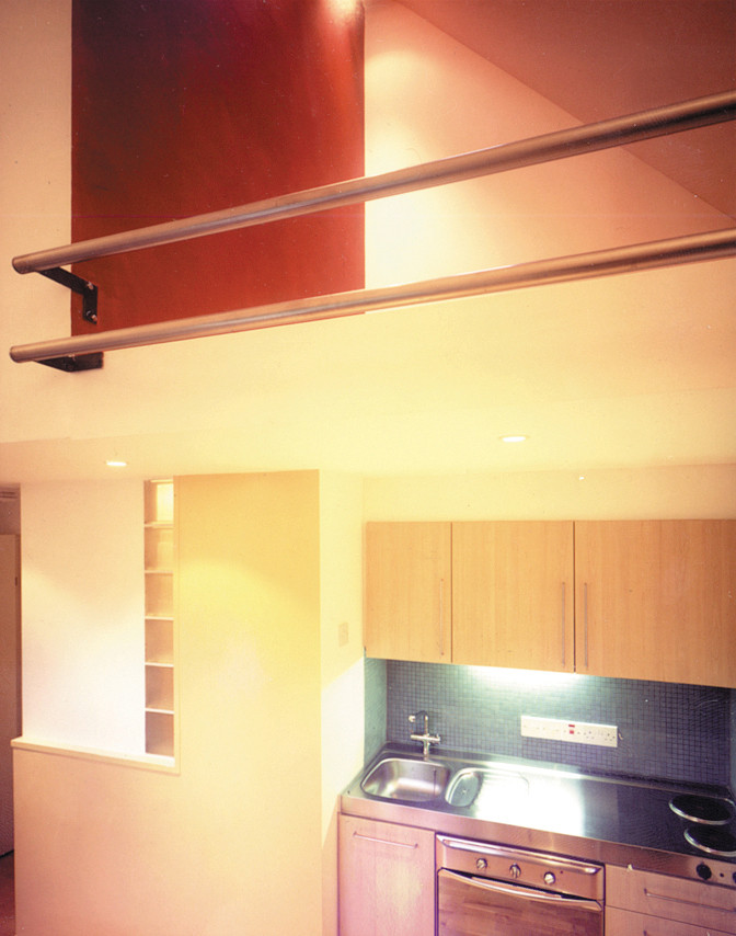 RDA devised a new urban prototype – a modern bedsit for young singles. After protracted negotiations with the planners, we won permission for 11 studio spaces and a two-bedroom flat. All living spaces are plugged into a service core running through the building. Some rooms had very high ceilings, and in these we designed bed-lofts over a kitchenette and shower room. The prototype had a £25,000 fit-out cost.